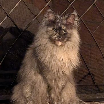 Artemis is a tortie smoke Maine Coon who prefers to observe quietly before committing — but once she does, she commits completely. Shy at first, she watches carefully, learns routines, and chooses her people with intention.